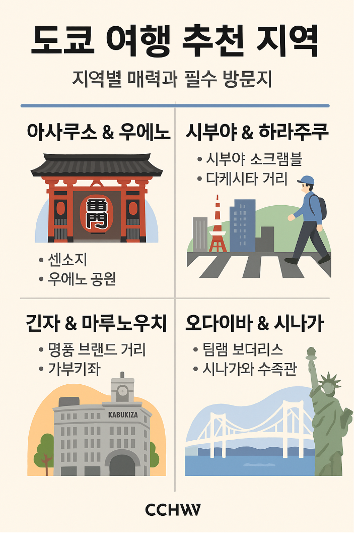 지역마다 뚜렷한 개성을 가진 도쿄! 이 글을 참고하여 나에게 꼭 맞는 지역을 선택하고, 멋진 여행을 계획해보세요.
